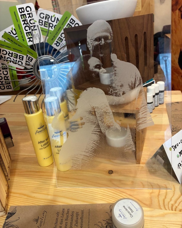 - Lasergravuren – vom Schriftzug bis zum Foto, auf nahezu allen Materialien
